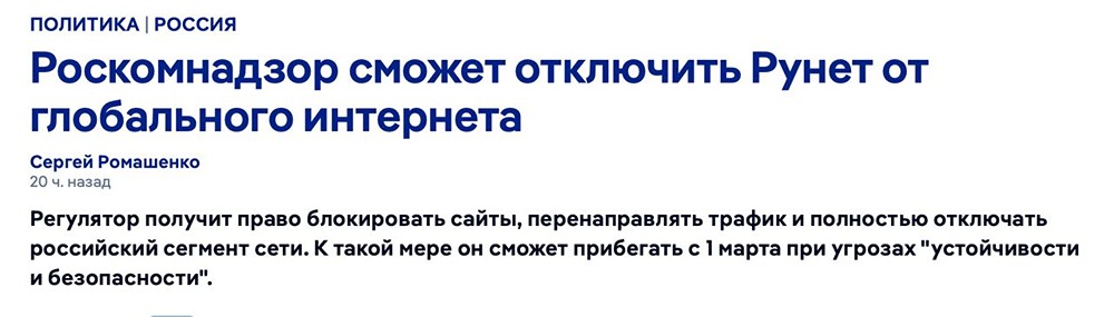 ‼️С марта 2026 года Роскомнадзор вправе отключить российский сегмент интернета от внешнего мира при выявленных угрозах.