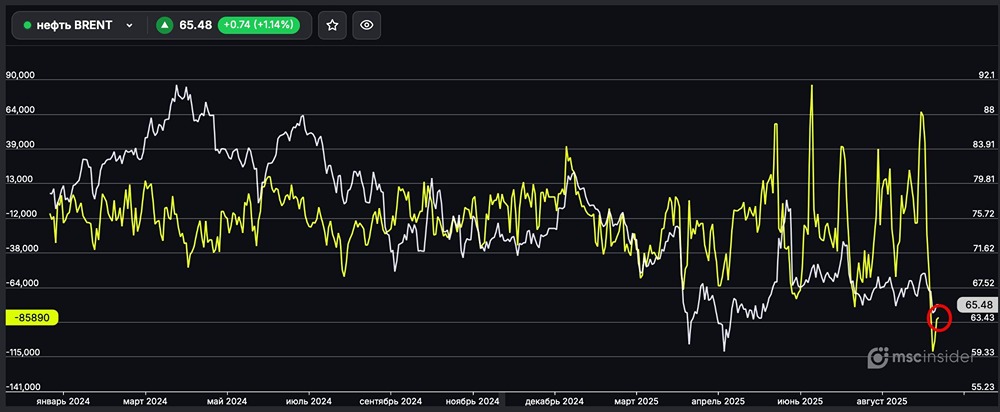 🔸 Юрлица постепенно сокращают чистый шорт во фьючерсе на Нефть BRENT