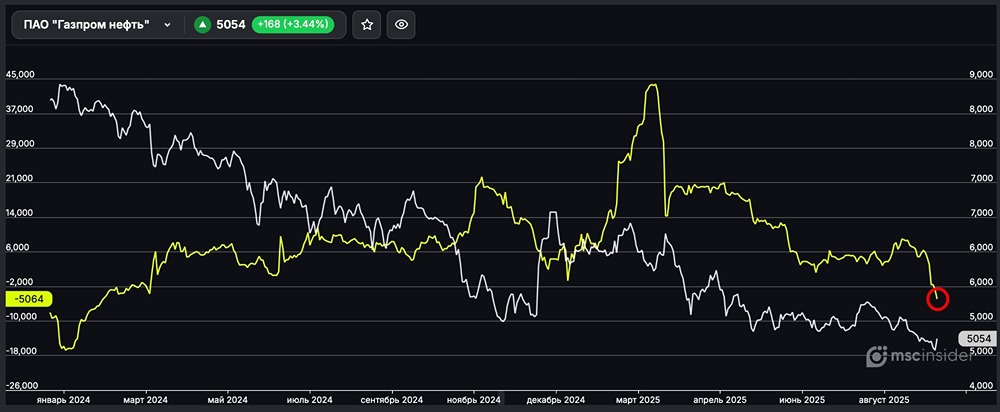 🔸 Физлица нарастили рекордный с февраля 2024 чистый шорт во фьючерсе на ПАО Газпром Нефть