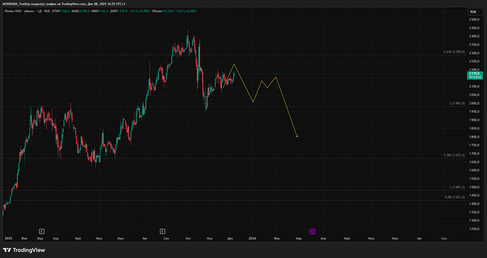 Полюс: инвестиционный потенциал акций золотодобытчика Драйверы Акции Полюса сохраняют восходящий тренд более трех лет, несмотря на периодические коррекции. Они устойчивее рынка реагируют на новости. Высокая корреляция с золотом положительно сказывается на перспективах компании. Сейчас акции пытаются продолжить рост после отскока от важных технических уровней, что делает их привлекательными для инвесторов. Техническая картина Котировки Полюса уверенно растут более трех лет, следуя за динамикой золота. В октябре 2025 года акции отскочили от важных уровней, включая 200-дневную скользящую среднюю. Акции Полюса более устойчивы к новостному фону, чем рынок в целом. Это особенно важно в условиях активизации мирных переговоров, так как снижает риск глубоких просадок после снятия завышенных ожиданий инвесторов. На дневном графике индикатор RSI показывает бычью дивергенцию. Сейчас он находится в середине диапазона, пересекая среднюю линию снизу вверх. Сильная поддержка акций — это сочетание восходящего тренда и EMA 200. Зона интереса покупателей проходит чуть выше 2030 рублей. Торговый план Покупаем акции Полюса от 2130 рублей. Стоп-лосс устанавливаем на уровне 2034 рублей (-4,5%). Целевая цена — 2430 рублей (+14%). Не является индивидуальной инвестиционной рекомендацией Пост взят с соцсети [M O N D I A R A](https://i.mondiara.com/) 👉 вот ссылка на канал: https://i.mondiara.com/i/c/polyus_analytics Скачать в [App Store](https://apps.apple.com/ru/app/m-o-n-d-i-a-r-a/id6475953453) Скачать в [Google Play](https://play.google.com/store/apps/details?id=com.mondiara.app) Валюта расчёта - Ваши добрые мысли! Спасибо, что с нами! Источник: Инвестидеи | акции РФ