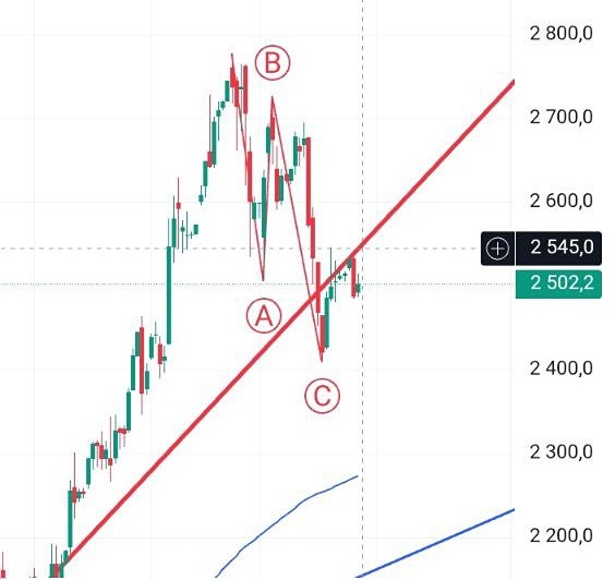 За последний месяц сформировали коррекцию АВС и сейчас видим попытку закрепиться над трендовой.