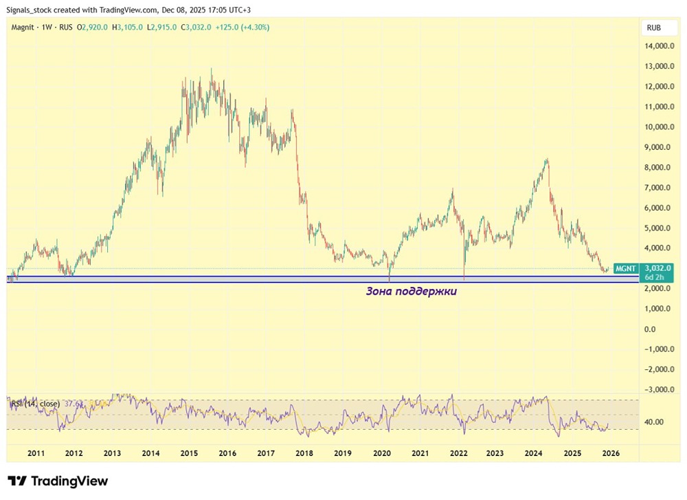 Магнитная аномалия на Мосбирже: что происходит с акциями Магнит? Утром на сайте Московской биржи появилась новость: Акции «Магнита» 9 декабря в основной торговой сессии не будут защищены мерами по стабилизации цен, так как биржа считает это оправданным из-за объективных причин. Акции «Магнита» отреагировали мгновенно и выросли на 7%. Однако позже биржа заявила, что новость появилась из-за технической ошибки, которая произошла во время тестовых торгов. В социальных сетях сразу же начали обсуждать возможные последствия. Одни говорили о buyback или дивидендах, другие — о делистинге. Последний вариант казался вполне реальным на фоне слухов о продаже компании «Ленте». В этом случае акционерам могли бы предложить оферту по средней цене за последние шесть месяцев, что значительно выше текущей стоимости акций. Вывод: торговать на основе слухов — не лучшая идея. Можно, конечно, выиграть, но есть риск потерять деньги. Если вы решили купить акции, лучше установите стоп-лосс под ноябрьские минимумы. Я уже говорил, что не в позиции и планирую войти в диапазон 2300–2600. Сейчас я просто наблюдаю за ситуацией. Акции «Магнита» часто становятся объектом манипуляций. То компания не раскрывает отчётность и переходит в третий эшелон, чтобы закупиться по низкой цене, то происходят непонятные события на уровне Мосбиржи. Это настоящая загадка. А вот акции «X5» — полная противоположность. Компания щедро платит дивиденды, предоставляет хорошие отчёты и не использует мутных схем. На прошлой неделе я писал, что готовится рост на основе накопления. За два дня акции выросли на 4%. С момента этой наводки они прибавили ещё 15%, но цели выше уровня дивидендной отсечки. Не является индивидуальной инвестиционной рекомендацией Пост взят с соцсети [M O N D I A R A](https://i.mondiara.com/) 👉 вот ссылка на канал: https://i.mondiara.com/i/c/magnit_analytics Скачать в [App Store](https://apps.apple.com/ru/app/m-o-n-d-i-a-r-a/id6475953453) Скачать в [Google Play](https://play.google.com/store/apps/details?id=com.mondiara.app) Валюта расчёта - Ваши добрые мысли! Спасибо, что с нами! Источник: Сигналы для торговли