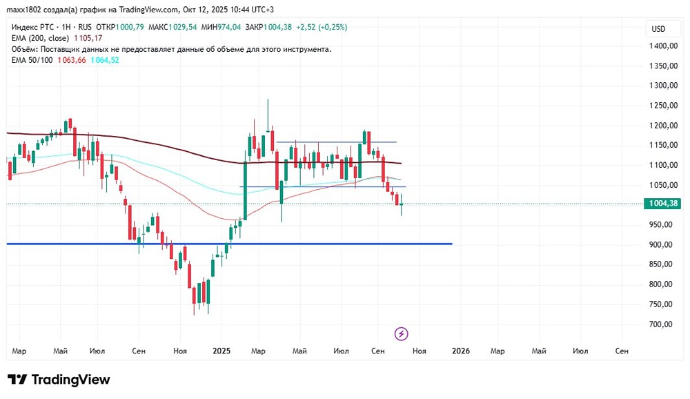 Индекс РТС: анализ графика Даже при крепком рубле индекс РТС снижается вместе с индексом Московской биржи. Это единственный фактор, который пока сдерживает его падение. 🔸 Анализ графика • На недельном таймфрейме ситуация развивается в соответствии с прогнозами. Напомним, что в предыдущем обзоре от 6 октября мы предсказывали, что цена достигнет уровня 975 и отскочит от него. Так и произошло. Однако отскок был незначительным, и цена закрепилась ниже уровня 1050. • С точки зрения технического анализа, перспективы ясны: цена продолжит снижаться. Это может произойти через тест уровня 1050 или без него. В любом случае следующей целью падения станет уровень 900. Это может означать либо значительное ослабление рубля, либо падение рынка акций. • Возможен и комбинированный сценарий: ослабление рубля и падение рынка акций одновременно. В этом случае эффект будет усилен, и индекс РТС может ускоренно снизиться. ❗️ Да, пока у нас нет позитивных новостей. Но если посмотреть на ситуацию с другой стороны, учитывая, что у нас ещё есть запас средств, и при сильном падении рынка можно будет выгодно закупиться, то ситуация не кажется такой уж мрачной. Данный материал носит информационный характер и не является индивидуальной инвестиционной рекомендацией или предложением о покупке или продаже указанной ценной бумаги. Больше новостей и анализа находятся в нашем мобильном приложение [m o n d i a r a](https://i.mondiara.com/) в канале: https://i.mondiara.com/i/c/RUSSIA_INDEX_TA Скачать в [App Store](https://apps.apple.com/ru/app/m-o-n-d-i-a-r-a/id6475953453) Скачать в [Google Play](https://play.google.com/store/apps/details?id=com.mondiara.app) Источник: Инвестируем Выгодно
