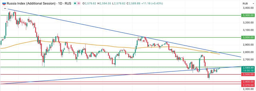 Достигнет ли индекс целевых 2600 пунктов после отскока? Индекс Мосбиржи в пятницу вырос на 0,93% и закрыл основную торговую сессию на уровне 2566,42 пункта. В выходные он поднялся до 2578 пунктов. Российский рынок продолжает восстанавливаться. В начале октября индекс достиг годового минимума — 2430 пунктов. К началу ноября он превысил 2580 пунктов, что на 6% выше минимума. Это пока лишь восстановление после обвала, вызванного геополитической и монетарной нестабильностью, а также новыми санкциями. На мировом рынке пока спокойно, инфляция снижается, и первый шок после ограничений на нефтяной сектор прошел — это и стало причиной отскока. С технической точки зрения индекс продолжает расти и возвращается выше важного уровня в 2580 пунктов. Ранее этот уровень был многолетней линией поддержки, а теперь стал сильным сопротивлением. Некоторые инвесторы могут попытаться зафиксировать прибыль, что замедлит рост. Однако, если индекс закрепится выше этого уровня, откроется возможность для дальнейшего роста до 2600 пунктов и даже до 2650 пунктов, где находится досанкционный гэп. После возможной заминки на уровне сопротивления я ожидаю именно такого сценария. Не является индивидуальной инвестиционной рекомендацией Пост взят с соцсети [M O N D I A R A](https://i.mondiara.com/) 👉 вот ссылка на канал: https://i.mondiara.com/i/c/RUSSIA_INDEX_TA Скачать в [App Store](https://apps.apple.com/ru/app/m-o-n-d-i-a-r-a/id6475953453) Скачать в [Google Play](https://play.google.com/store/apps/details?id=com.mondiara.app) Валюта расчёта - Ваши добрые мысли! Спасибо, что с нами! Источник: Investment Hub