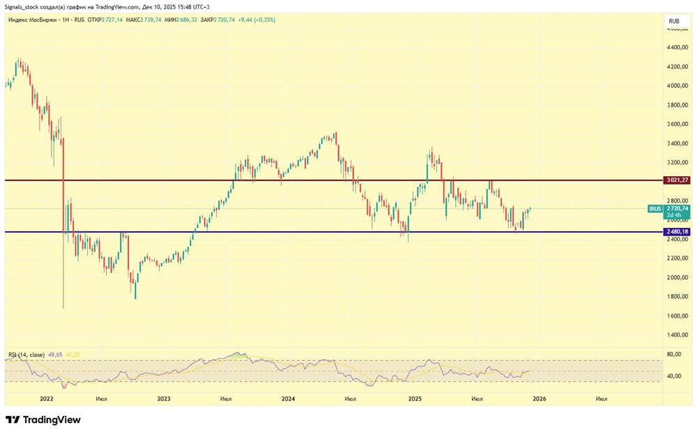 Индекс Мосбиржи: почему рынок застрял в боковике? На прошлой неделе рынок вышел из накопления, но затем движение остановилось. Причины этого застоя я уже обсуждал. Вероятно, без значимых новостей рынок может оставаться в таком состоянии до конца следующей недели. Однако в целом ситуация выглядит благоприятно: 1. Геополитическая обстановка улучшается. Недавно США представили обновлённую стратегию национальной безопасности, где Россия уже не рассматривается как враг. В приоритете восстановление стратегической стабильности. Критика же направлена на Европу за отношение к российско-украинскому конфликту, миграционную политику и другие вопросы. Европейские лидеры злятся, но не могут ничего сделать. Трамп справедливо отодвигает ЕС в сторону от решения украинского вопроса. Он даже опубликовал в соцсетях статью из New York Post. Один из главных рисков — это изъятие замороженных активов России. Без этих средств поддержка Украины может прекратиться, и Зеленский будет вынужден согласиться на невыгодные условия мира. Но Брюссель и даже Франция выступают против этого предложения. Окончательное решение будет принято 18-19 декабря. Я сомневаюсь, что средства будут полностью изъяты. В Европе также назревает раскол по украинскому вопросу. В Чехии победил Андрей Бабиш, который против помощи Украине. Италия отказывается от военной поддержки. Макрон пытается убедить Китай оказать давление на Россию, но безуспешно. После визита в Китай он пригрозил ЕС тарифами. Это выглядит забавно. 2. Макроэкономические данные тоже оптимистичны. Инфляция снизилась до 6,6%, что является лучшим показателем с сентября 2023 года. Налоговая реформа и сезонность могут немного ухудшить ситуацию, но ЦБ это понимает. Есть шанс, что 19 декабря ключевая ставка снизится хотя бы на 1%, хотя прогноз предполагает только 0,5%. Таким образом, как технически, так и фундаментально ситуация складывается позитивно. Однако до 18-19 декабря рынок может оставаться в боковике из-за неопределённости и рисков. Инвесторы перестраховываются, что снижает объёмы торгов. Но несмотря на это, мой настрой остаётся позитивным. Не является индивидуальной инвестиционной рекомендацией Пост взят с соцсети [M O N D I A R A](https://i.mondiara.com/) 👉 вот ссылка на канал: https://i.mondiara.com/i/c/RUSSIA_INDEX_TA Скачать в [App Store](https://apps.apple.com/ru/app/m-o-n-d-i-a-r-a/id6475953453) Скачать в [Google Play](https://play.google.com/store/apps/details?id=com.mondiara.app) Валюта расчёта - Ваши добрые мысли! Спасибо, что с нами! Источник: Сигналы для торговли