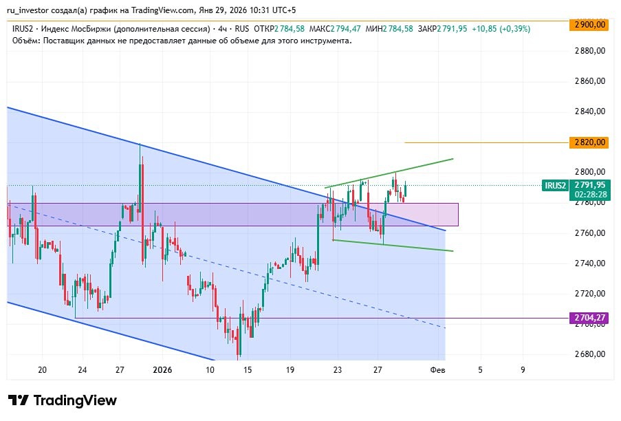 Обзор геополитики, честно, уже поднадоел Одно и то же из раза в раз. На Западе тотальное противостояние между США и Европой/Украиной, при этом американцы успевают нас эффективно пинать, а мы пытаемся в договорняки «не благодаря, а вопреки». В общем, это уже не просто «люди-кони», а полноценная «королевская битва», где все против всех. Занятная ситуация стремительной фрагментации мира. Ну да и бог с этим всем. Глянем на индекс. С виду у нас расширяющийся канал, его суть та же, что и у сужающегося Вымпела — продолжение предыдущего движения. То есть в данном случае более вероятен лонг. Стоит нам закрепиться выше 2800, как у нас появится шанс увидеть 2820 (закрытие шипа на дневке) и 2900. Нездоровый рост просто на пустом месте. Тот же RGBI, к примеру, падает, а учитывая достаточную корреляцию между индексами, картина занятная: график гособлигаций уже закладывает негатив от ставки, а акции весело и задорно растут. Думаю, дело в большей техничности RGBI из-за большей ликвидности. Фондовый рынок более тонкий и эмоциональный. Впрочем, пока лонгуется — лонгуем. Сегодня дам ещё несколько идей, надеюсь, они будут вам полезны. Не является индивидуальной инвестиционной рекомендацией Пост взят с международного сервиса для инвесторов и трейдеров [M O N D I A R A](https://i.mondiara.com/) 👉 вот ссылка на канал: https://i.mondiara.com/i/c/RUSSIA_INDEX_TA Скачать приложение в [App Store](https://apps.apple.com/ru/app/m-o-n-d-i-a-r-a/id6475953453) Скачать приложение в [Google Play](https://play.google.com/store/apps/details?id=com.mondiara.app) Валюта расчёта - Ваши добрые мысли! Спасибо, что с нами! [M O N D I A R A](https://i.mondiara.com/) — ключевой инструмент для исследований, торговли, инвестирования и стратегического планирования на российском фондовом рынке Источник: Хроники Инвестора