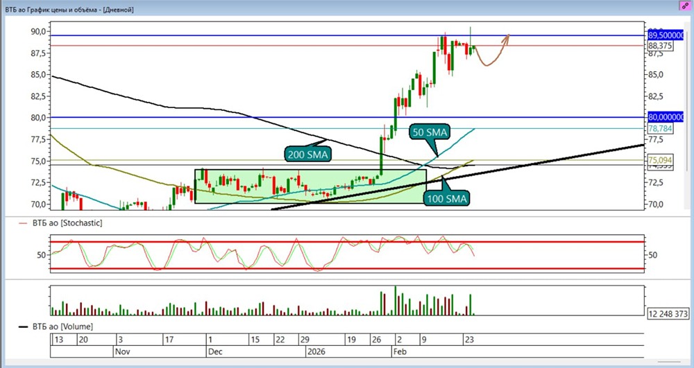 Вторая цель по лонгу на уровне ₽89,5 была выполнена.