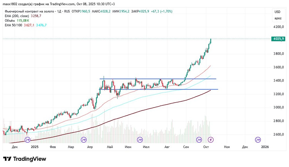 Золото: анализ графика Пока в мире растёт напряжённость, мировая финансовая система испытывает сбои, бюджеты государств испытывают дефицит, а национальные валюты обесцениваются через дополнительную эмиссию, есть один универсальный инструмент для сбережений — золото! 🔶 Анализ графика 🔸 Дневной таймфрейм После выхода из боковика 3280–3430 цена уверенно растёт. Бесконечный рост невозможен, но пока нет признаков даже небольшой коррекции. После такого резкого подъёма внизу осталось множество незакрытых гэпов. Практика показывает, что рано или поздно они будут закрыты. Какие события этому поспособствуют, узнаем позже, но гэпы обязательно будут закрыты. 🔸 Месячный таймфрейм На более длительном временном промежутке ситуация выглядит ещё более однозначно: каждый месяц цена обновляет максимумы. Однако финального резкого движения, после которого возможен хороший откат, пока не произошло. Если у вас есть этот актив, его следует удерживать. Но важно следить за финалом роста, так как цена может упасть так же легко, как и подняться. ❗️ Будьте осторожны и следите за своими позициями. Рынок сейчас подвержен влиянию новостей, и возможны движения в обе стороны. Данный материал носит информационный характер и не является индивидуальной инвестиционной рекомендацией или предложением о покупке или продаже указанной ценной бумаги. Больше новостей и анализа находятся в нашем мобильном приложение [m o n d i a r a](https://i.mondiara.com/) Скачать в [App Store](https://apps.apple.com/ru/app/m-o-n-d-i-a-r-a/id6475953453) Скачать в [Google Play](https://play.google.com/store/apps/details?id=com.mondiara.app) Источник: Инвестируем Выгодно