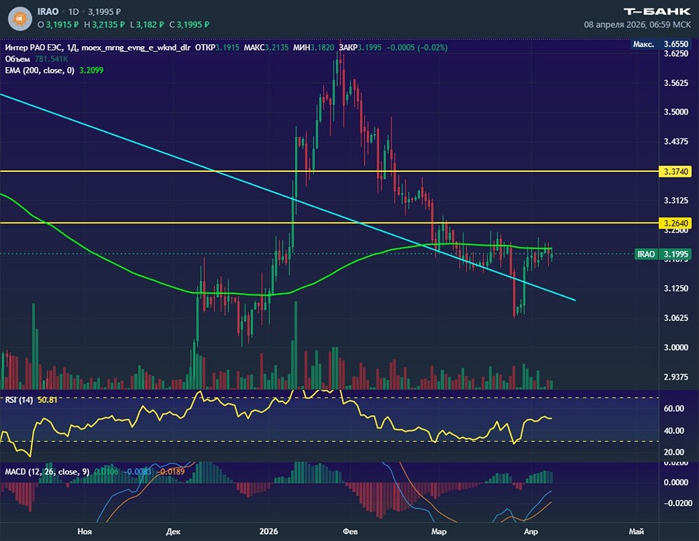🔺 ИнтерРАО на дневном таймфрейме сформировал пГиП с потенциалом движения в район 3.37.