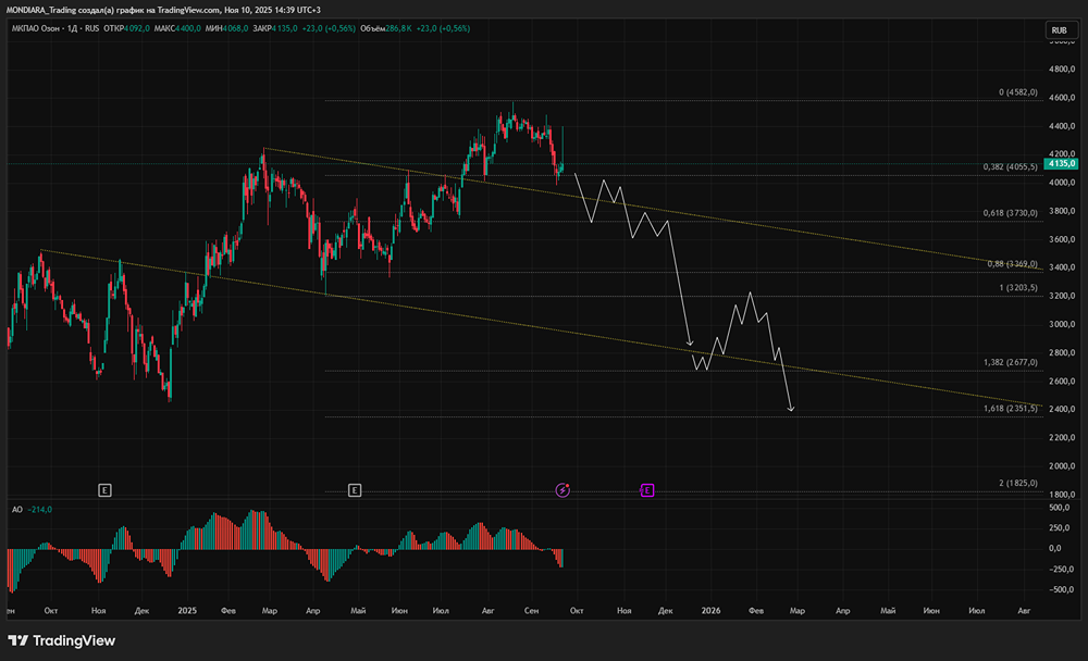 OZON возвращается на биржу: что ждет инвесторов? Завтра начнутся торги акциями российской компании МКПАО "Озон" (тикер остался прежним – OZON). Торги были приостановлены в сентябре текущего года в связи с редомициляцией. До этого на Мосбирже обращались американские депозитарные расписки (АДР) Ozon. Главный вопрос: как поведет себя цена акций и не обрушится ли она под давлением продавцов? Основные акционеры – АФК "Система" (31,8%) и А. Чачава (27,7%) – вряд ли будут массово продавать бумаги. Основной риск исходит от миноритариев, чьи акции были в виде АДР и составляют около 33% капитала. Однако стоит учесть, что большая часть иностранцев уже продала свои активы во время делистинга с зарубежных бирж. Доля "вынужденных" продавцов, по оценкам, не превысит 10-15% от общего капитала, что составляет примерно 90-135 миллиардов рублей. Но есть и положительные факторы: • Рост ликвидности и доступности: теперь акции смогут купить российские инвесторы без статуса квалифицированного и институциональные инвесторы. • Включение в индексы: это заставит фонды покупать акции. • Дивиденды: 7 ноября совет директоров компании рекомендовал дивиденды в размере 143,55 рубля на акцию (~3,5% доходности). • Отчетность: сегодня будет опубликован отчет за третий квартал 2025 года, где ожидается высокий рост оборота и выход на чистую прибыль. Волатильность будет высокой, поэтому не стоит спешить с покупкой акций в первый день торгов. Рынок должен успокоиться. Сильная отчетность, высокий спрос со стороны инвесторов и включение компании в индексы Мосбиржи стабилизируют котировки. Важно помнить, что торги акциями X5 были возобновлены 9 января текущего года по цене 2798 рублей за бумагу. После этого компания показала прекрасные результаты, а также выплатила спецдивиденд в размере 648 рублей на акцию (~17,7% доходности). На днях должны определить дивиденды за 9 месяцев 2025 года (прогноз – 250-300 рублей). Посмотрите, по какой цене сейчас торгуются акции X5, и делайте выводы. На данный момент в моем портфеле нет акций Ozon, так как 13 декабря прошлого года я продал их в связи с переездом головной компании с Кипра в Россию и возможной приостановкой торгов. После возобновления торгов я планирую добавить акции компании в свой портфель, если цена будет приемлемой. Не является индивидуальной инвестиционной рекомендацией Пост взят с соцсети [M O N D I A R A](https://i.mondiara.com/) 👉 вот ссылка на канал: https://i.mondiara.com/i/c/ozon_analytics Скачать в [App Store](https://apps.apple.com/ru/app/m-o-n-d-i-a-r-a/id6475953453) Скачать в [Google Play](https://play.google.com/store/apps/details?id=com.mondiara.app) Валюта расчёта - Ваши добрые мысли! Спасибо, что с нами! Источник: Инвестиции как образ жизни
