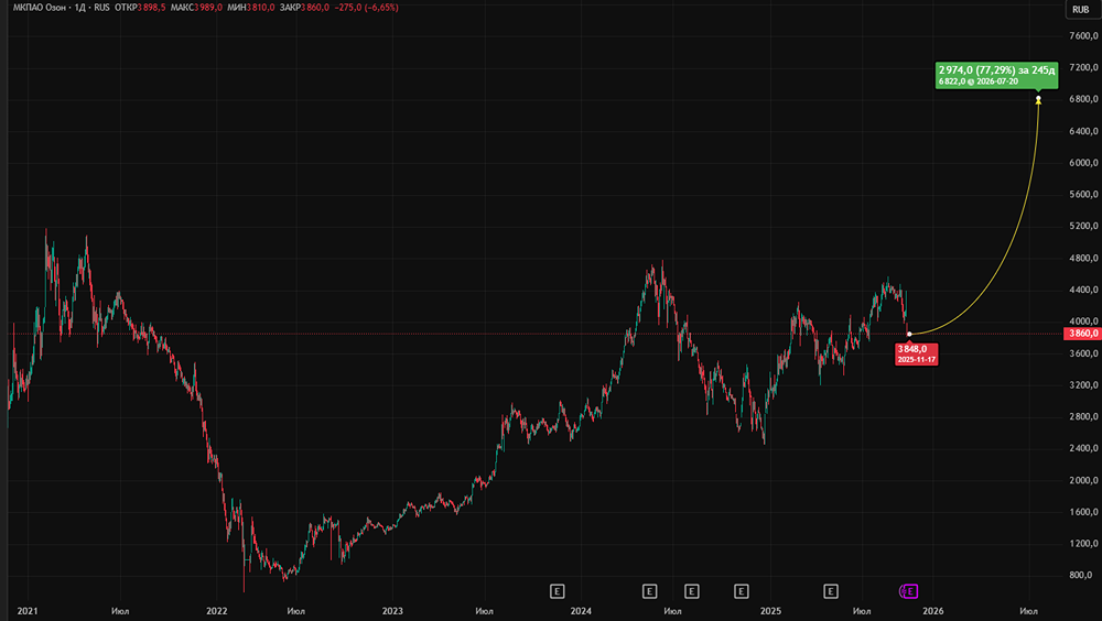Мнение: Велес Капитал Ozon опубликовал финансовые итоги за третий квартал 2025 года, которые мы оцениваем как сильные Компания превзошла ожидания по обороту, выручке и EBITDA. Финансовые прогнозы были повышены уже во второй раз за год. Ожидается, что оборот вырастет на 41-43% в годовом сравнении, а EBITDA достигнет 140 млрд руб. вместо ожидаемых 100-120 млрд руб. Мы уверены, что компания сможет превзойти даже этот обновленный прогноз. Группа объявила о программе обратного выкупа акций для мотивации сотрудников. Программа продлится до конца 2026 года и ограничена 25 млрд руб. При текущей цене это позволит выкупить до 3% капитала и поддержать котировки. Ранее компания объявила о первых дивидендах в размере 143,55 руб. на акцию, с доходностью около 3,5%. Менеджмент подтвердил, что выплаты станут регулярными. Со следующего года планируется переход на полугодовое распределение дивидендов (две выплаты в год). Общая сумма дивидендов в 2026 году может быть сопоставима с выплатами за первые девять месяцев 2025 года. Торги акциями МКПАО после редомициляции начнутся 11 ноября. Переезд улучшит ликвидность и позитивно скажется на инвестиционном профиле Ozon. Однако в начале торгов цена может быть волатильной из-за навеса акций. По нашему мнению, навес не будет критичным. С учетом коэффициента конвертации 1:1 наша рекомендация и целевая цена остаются неизменными. Мы рекомендуем «Покупать» акции компании. Целевая цена составляет 6 822 руб. за бумагу. Автор: Артем Михайлин Не является индивидуальной инвестиционной рекомендацией Пост взят с соцсети [M O N D I A R A](https://i.mondiara.com/) 👉 вот ссылка на канал: https://i.mondiara.com/i/c/ozon_analytics Скачать в [App Store](https://apps.apple.com/ru/app/m-o-n-d-i-a-r-a/id6475953453) Скачать в [Google Play](https://play.google.com/store/apps/details?id=com.mondiara.app) Валюта расчёта - Ваши добрые мысли! Спасибо, что с нами! Источник: t.me/velescapital