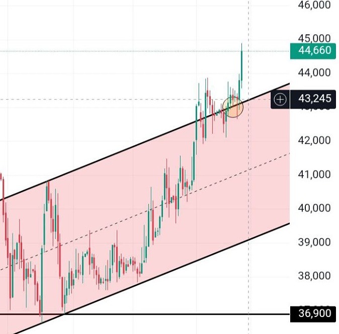 Лонговать, соответственно, стоит при очередном ретесте верха канала 43,24, где я тоже буду добавлять актив в долгосрочный портфель.