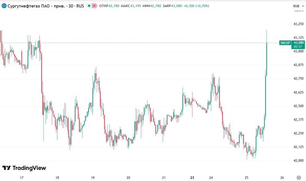 В префах «Сургутнефтегаза» сегодня невиданное веселье: акции растут более чем на 2% — народ ждёт либо ослабление рубля, либо большие дивиденды