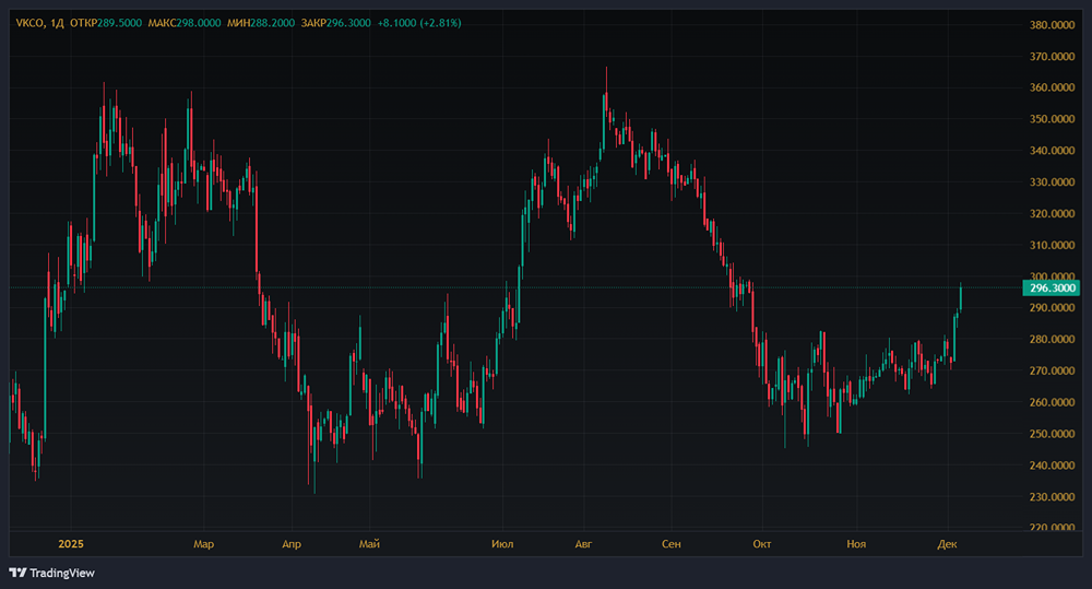 Мнение: Велес Капитал Акции VK стремятся достичь годового максимума В конце ноября VK представила финансовые результаты за первые девять месяцев текущего года по МСФО. Эти результаты мы оцениваем как нейтральные. Выручка и EBITDA оказались близкими к нашим прогнозам и консенсусу аналитиков. Компания подтвердила свой прогноз и по-прежнему ожидает, что EBITDA в 2025 году превысит 20 млрд рублей. Результаты за девять месяцев показывают, что группа способна достичь этой цели. Мы сохраняем текущую рекомендацию «Держать» для акций VK, а целевая цена находится в процессе пересмотра. С технической точки зрения, акции VK достигли годового максимума в 366,5 рублей в августе, после чего начали снижаться вместе с российским фондовым рынком. В октябре движение приостановилось, и акции попытались удержать бычий тренд, начавшийся в ноябре 2024 года. Сегодня котировки тестируют сопротивление на уровне 283 рублей. Ранее они достигали этой отметки в конце сентября, но локальный максимум пока не подтвержден пиком гистограммы MACD на дневном графике. Это предупреждение для покупателей о необходимости быть осторожными. Сигналы недельного графика указывают на ослабление «медведей». Однако акции пока остаются ниже важного уровня сопротивления 293 рублей. Если акции стабилизируются выше этого уровня, можно ожидать возвращения к годовому максимуму 366,5 рублей, особенно при усилении оптимизма на российском фондовом рынке. При снижении ниже 283 рублей акции могут перейти в боковое движение, а риски обновления октябрьского минимума 245 рублей возрастут, если цена опустится ниже 250 рублей. Автор: Елена Кожухова Не является индивидуальной инвестиционной рекомендацией Пост взят с соцсети [M O N D I A R A](https://i.mondiara.com/) 👉 вот ссылка на канал: https://i.mondiara.com/i/c/vk_analytics Скачать в [App Store](https://apps.apple.com/ru/app/m-o-n-d-i-a-r-a/id6475953453) Скачать в [Google Play](https://play.google.com/store/apps/details?id=com.mondiara.app) Валюта расчёта - Ваши добрые мысли! Спасибо, что с нами! Источник: t.me/velescapital