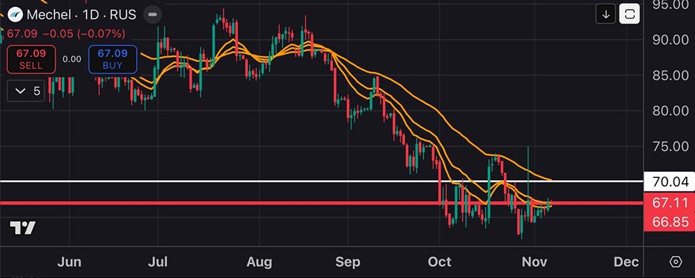 «Мечел» пытается отскочить с текущих, крайнее ближайшее сопротивление на ₽67, если котировки закрепятся выше, откроется путь дальше.