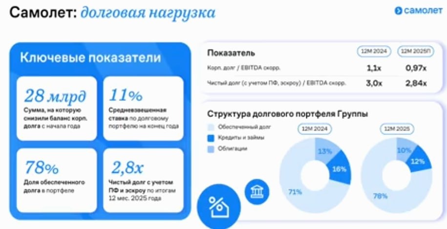 Корпоративный долг Самолета за 2025 год снизился на 28 млрд руб — CFO компании Нина Голубничая
