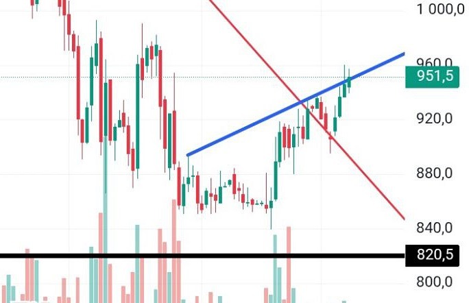 Исходя из текущей картины, для докупа необходимо закрепиться по итогам дня над уровнем 952, тогда откроется цель в районе 1100.