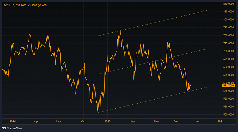 Мнение: Велес Капитал Акции Татнефти после дивидендной отсечки могут направиться к минимуму 2024 года 🔸 Сегодня последний день, когда акции «Татнефти» торгуются с дивидендами за первое полугодие 2025 года. Размер выплат составляет 14,35 рублей, что дает доходность около 2,5%. 🔸 За первые шесть месяцев 2023 года «Татнефть» заработала 54,21 миллиарда рублей чистой прибыли по международным стандартам финансовой отчетности (МСФО). Годом ранее этот показатель был значительно выше — 151,4 миллиарда рублей. Из-за снижения прибыли компания сократила дивиденды по сравнению с предыдущими периодами. Обычно «Татнефть» также выплачивает дивиденды по итогам третьего квартала и за весь год. 🔸 В августе акции «Татнефти» почти достигли годового пика в 769,8 рублей, но затем вместе с российским рынком начали снижаться. В октябре котировки обновили годовой минимум, опустившись до 568,2 рублей, после чего попытались восстановиться. 🔸 Если негативные тенденции на российском фондовом рынке сохранятся, цены на нефть останутся низкими, а санкционное давление усилится, акции «Татнефти» могут продолжить падение. Дивиденды за третий квартал текущего года могут лишь частично стабилизировать ситуацию. Автор: Елена Кожухова Данный материал носит информационный характер и не является индивидуальной инвестиционной рекомендацией или предложением о покупке или продаже указанной ценной бумаги. Больше новостей и анализа находятся в нашем мобильном приложении [m o n d i a r a](https://i.mondiara.com/) в канале: https://i.mondiara.com/i/c/tatneft_analytics Скачать в [App Store](https://apps.apple.com/ru/app/m-o-n-d-i-a-r-a/id6475953453) Скачать в [Google Play](https://play.google.com/store/apps/details?id=com.mondiara.app) Источник: t.me/velescapital