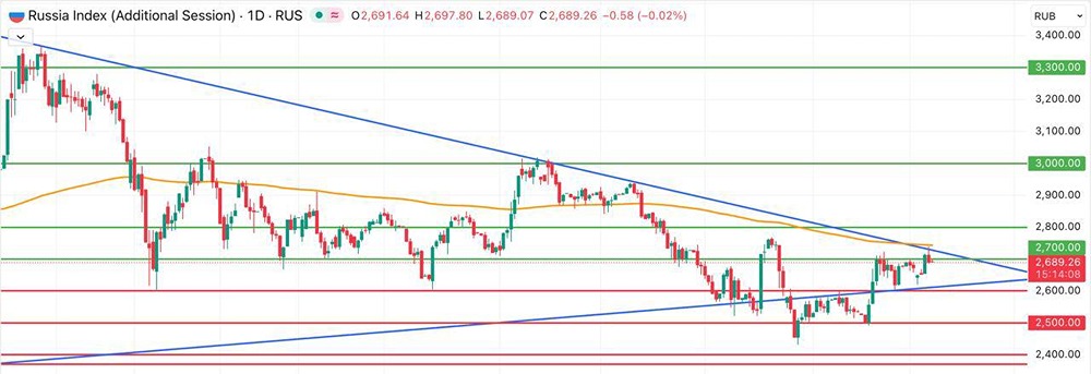 Индекс Мосбиржи теряет позиции: что происходит на рынке? Индекс Мосбиржи завершил основную торговую сессию понедельника падением на 0,23% и закрылся на уровне 2705,17 пункта. Вечерняя сессия закрылась на отметке 2689 пунктов. В начале дня российский рынок продолжал расти и достиг двухмесячного максимума, приблизившись к уровню 2745 пунктов. Однако близость важного уровня сопротивления привлекла спекулятивных продавцов, а спрос со стороны покупателей снизился из-за новостей об обмене заблокированных активов. Ситуация не улучшилась и из-за разногласий между странами по плану Трампа — конфликт затягивается. Техническая картина неоднозначна: с одной стороны, рынок достиг локальных целей, закрыв октябрьский гэп в районе 2745 пунктов. С другой стороны, закрытие сессии ниже 2700 пунктов выглядит менее оптимистично. Рост возможен, но для этого нужны позитивные новости. Даже небольшой намек на улучшение ситуации может активизировать инвесторов. Это видно на графике: в ноябре-декабре импульсы роста сильнее и быстрее, чем периоды снижения. Не является индивидуальной инвестиционной рекомендацией Пост взят с соцсети [M O N D I A R A](https://i.mondiara.com/) 👉 вот ссылка на канал: https://i.mondiara.com/i/c/mosbirzha_analytics Скачать в [App Store](https://apps.apple.com/ru/app/m-o-n-d-i-a-r-a/id6475953453) Скачать в [Google Play](https://play.google.com/store/apps/details?id=com.mondiara.app) Валюта расчёта - Ваши добрые мысли! Спасибо, что с нами! Источник: Investment Hub
