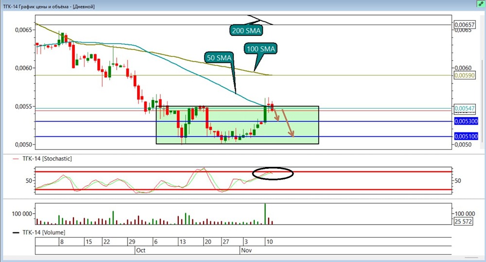 • Стоп за скользящую 100 SMA или ₽0,0059 на сегодня.