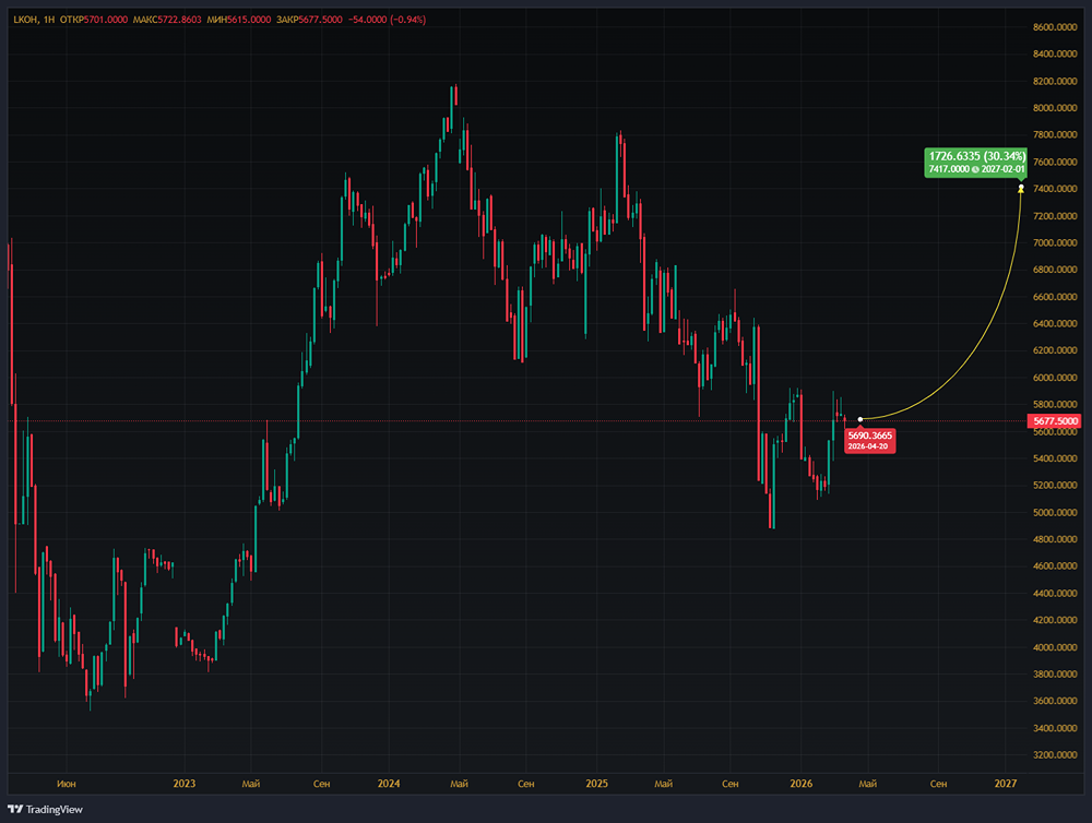 С начала года акции ЛУКОЙЛа упали на 4%, уступая отраслевым индексам, несмотря на рост цен на нефть. Причина — слабые результаты за 2025 год: чистый убыток составил 1,06 трлн рублей из-за списания зарубежных активов, в первую очередь LUKOIL International GmbH (–1,66 трлн рублей), что связано с санкционной неопределенностью.